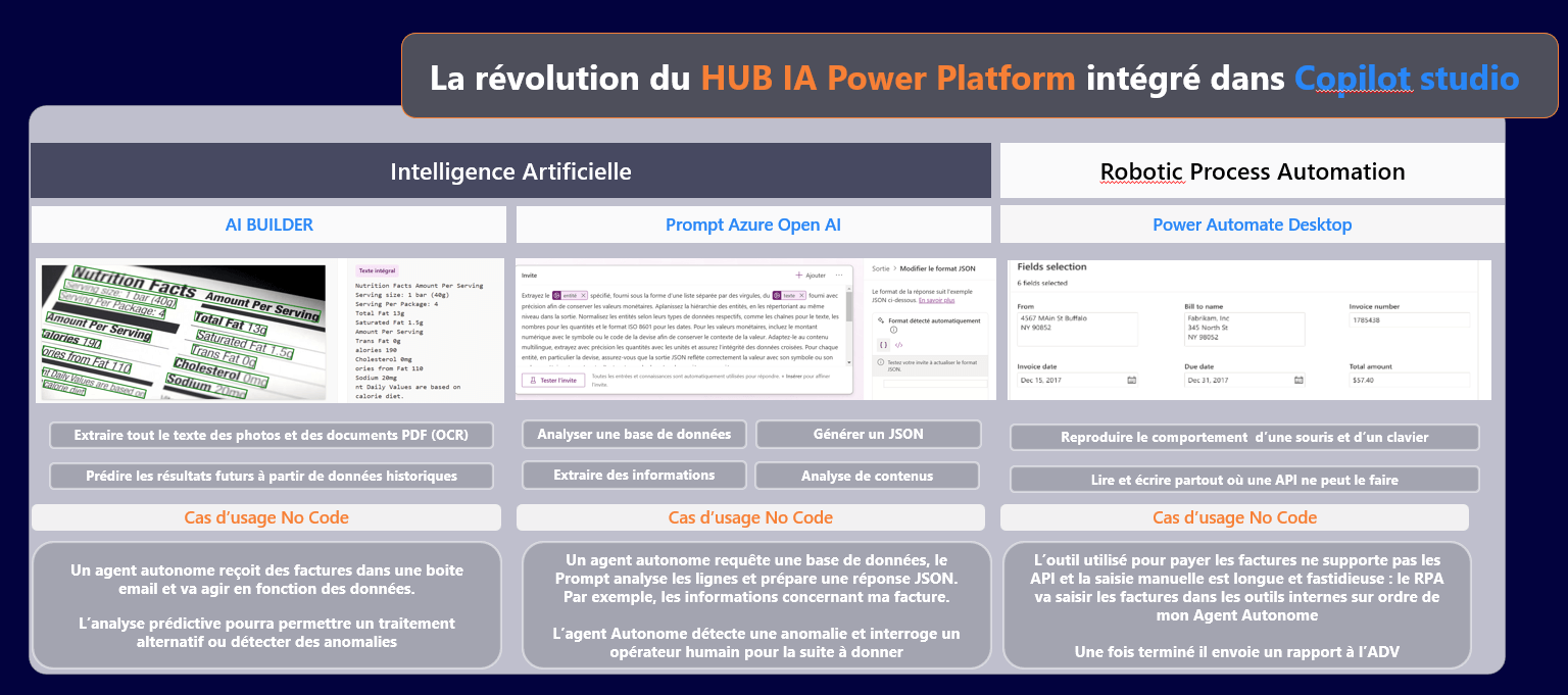 L’intégration de Copilot Studio – notamment en mode agent autonome – avec le Hub IA Power Platform, Power Automate et Dataverse offre une solution robuste pour aborder des sujets complexes.