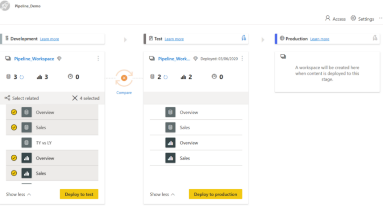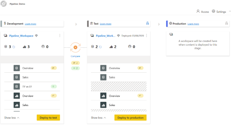 Crédits : https://docs.microsoft.com/en-us/power-bi/create-reports/deployment-pipelines-overview