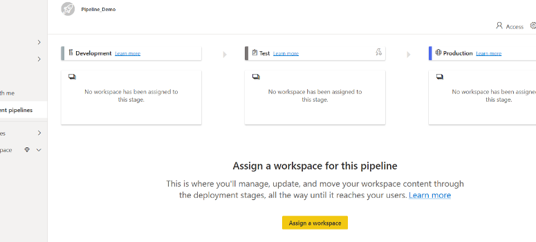 Dans le pipeline de déploiement que vous venez de créer, sélectionnez Assigner un espace de travail.