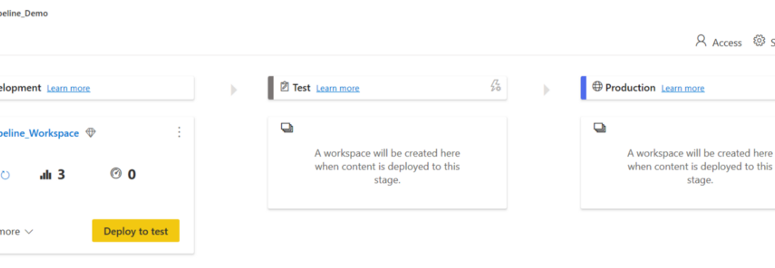 Sélectionnez l’étape de déploiement et cliquez sur le bouton de déploiement. Le processus de déploiement crée un espace de travail dupliqué dans l’étape cible. Cet espace de travail comprend tout le contenu existant à l’étape actuelle.